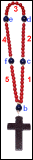 Se compone de cinco decenas, en honor a las cinco Llagas de Nuestro Señor Jesucristo